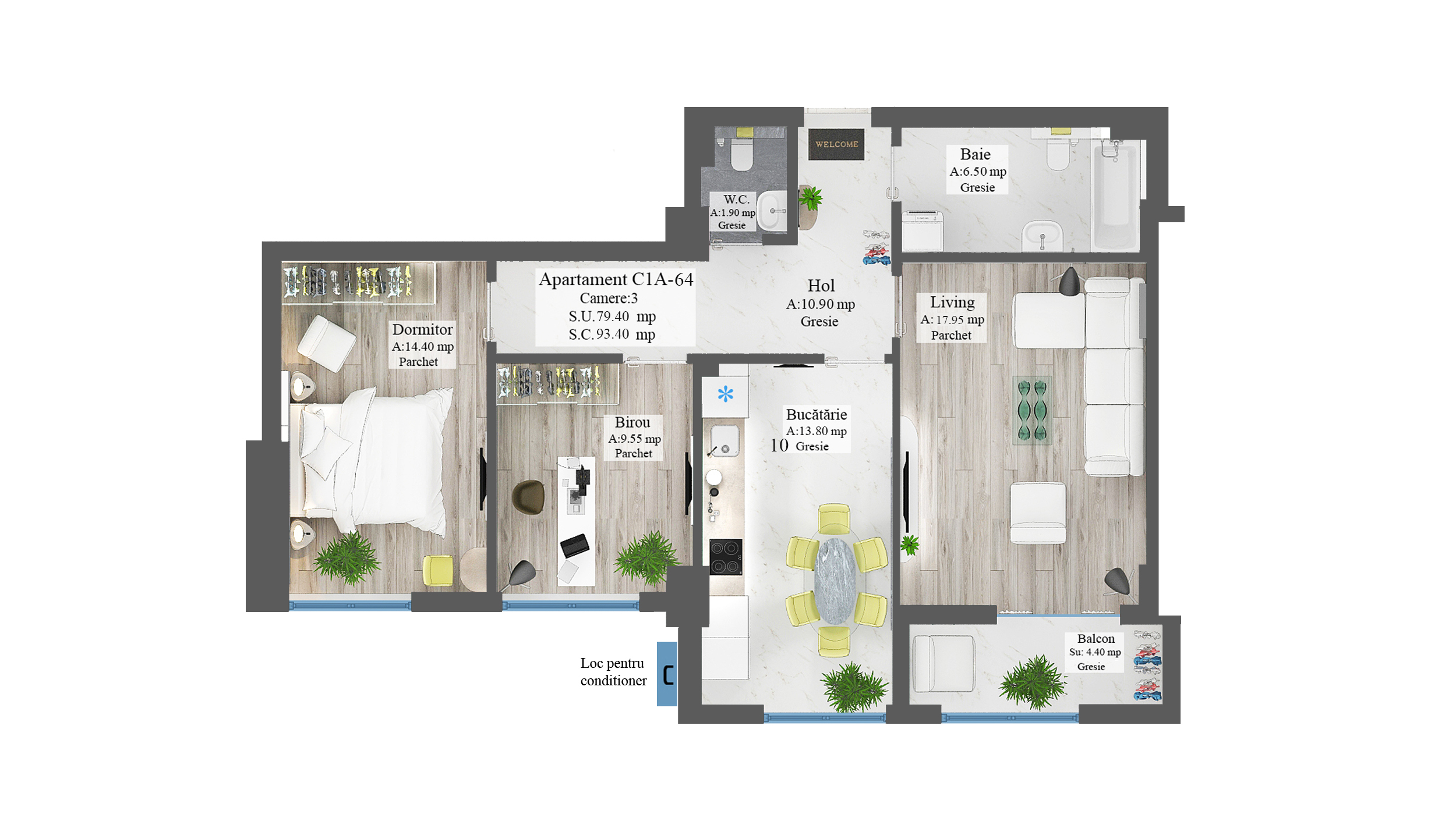 • Suprafata utila: 79mp
